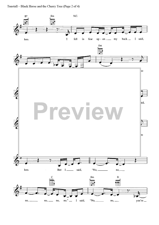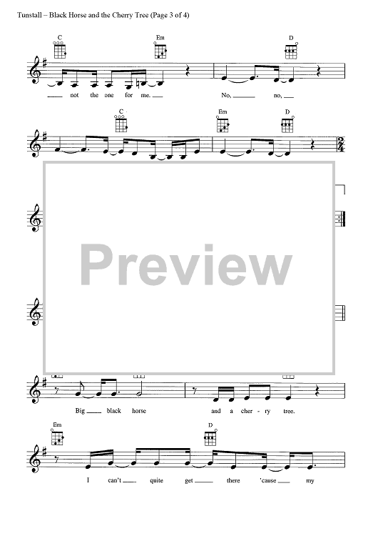 Digital Sheet Music for Black Horse and the Cherry Tree by KT Tunstall scored for Ukulele/Vocal; id:444758