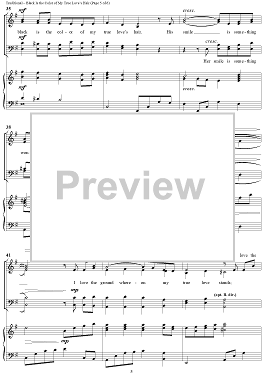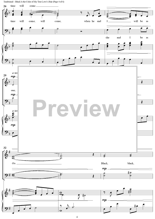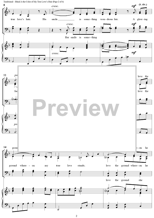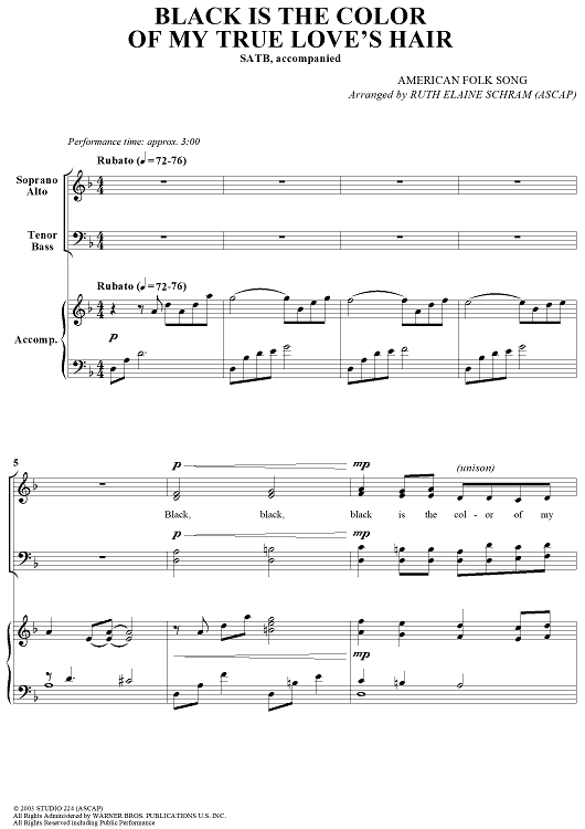Digital Sheet Music for Black is the Color of My True Love's Hair by Ruth Elaine Schram, American Folk Song scored for SATB Choir/Piano; id:318680