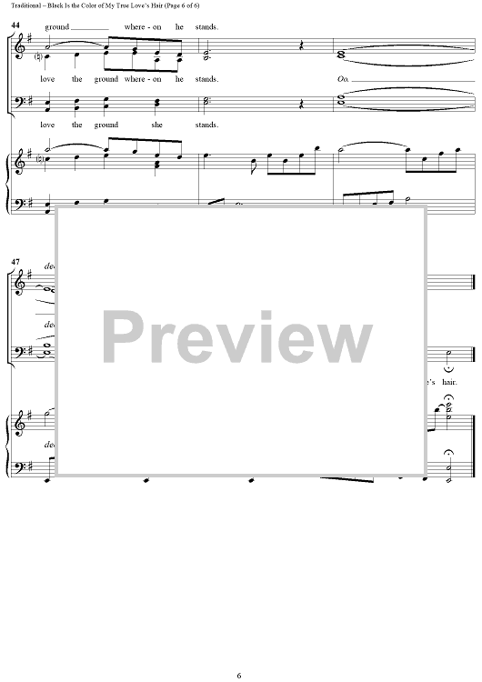 "Black is the Color of My True Love's Hair" Sheet Music by American Folk Song