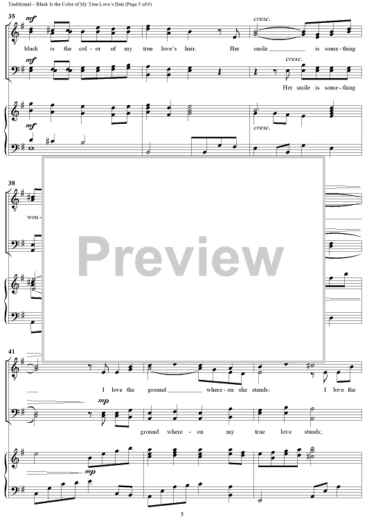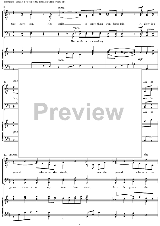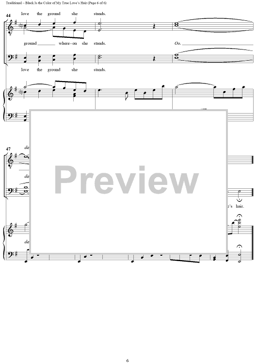 "Black is the Color of My True Love's Hair" Sheet Music by American Folk Song
