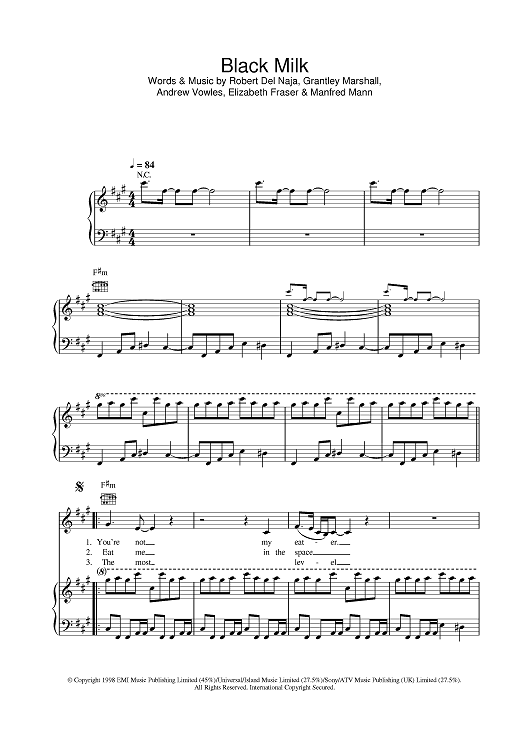 Digital Sheet Music for Black Milk by Massive Attack scored for Piano/Vocal/Chords; id:378031
