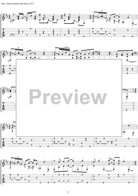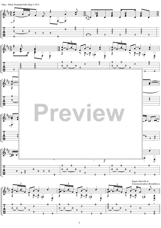 Digital Sheet Music for Black Mountain Side by Jimmy Page, Led Zeppelin scored for Guitar Tab/Vocal; id:112071