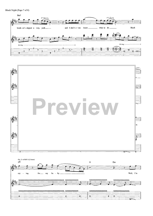 Digital Sheet Music for Black Night by Jessie Mae Robinson, Joe Bonamassa scored for Guitar Tab/Vocal/Chords; id:465507
