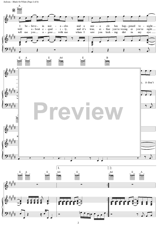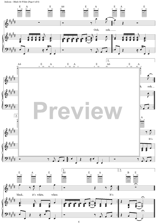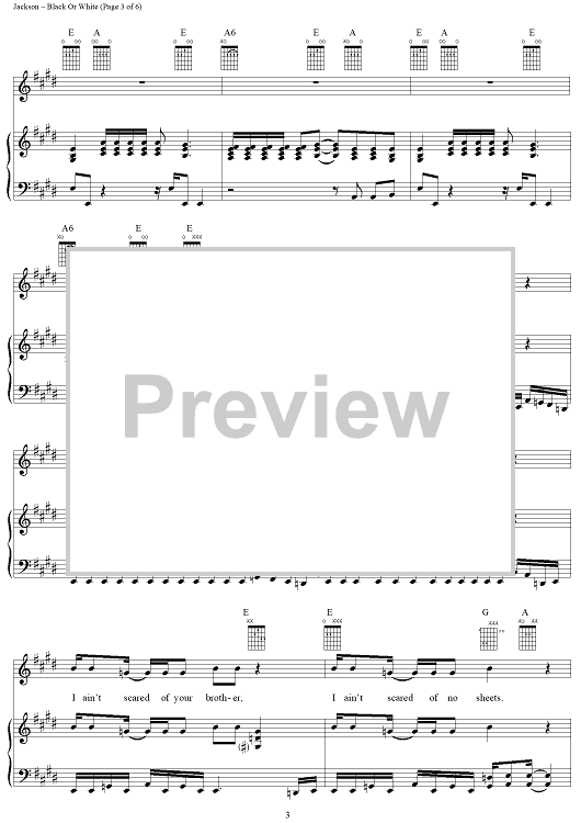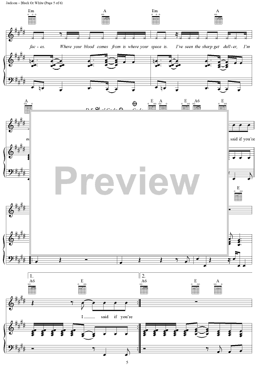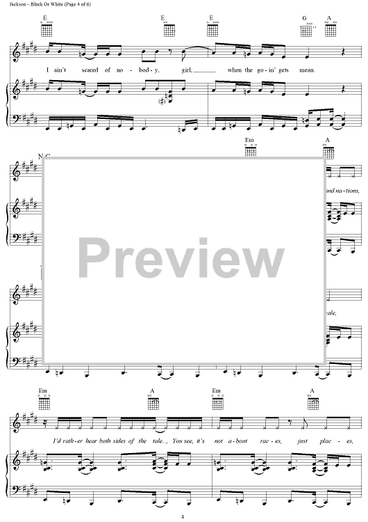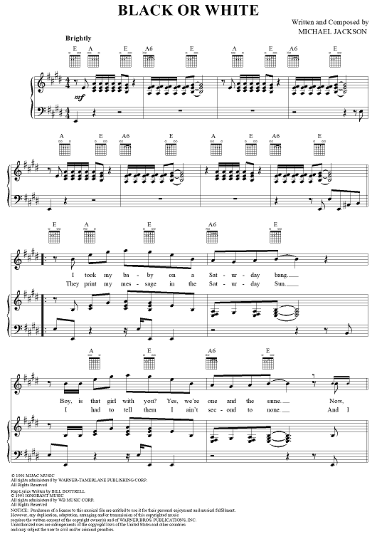Digital Sheet Music for Black Or White by Michael Jackson scored for Piano/Vocal/Chords; id:119705