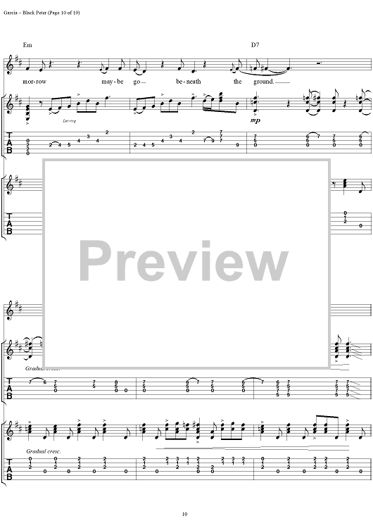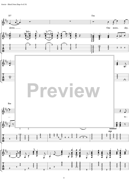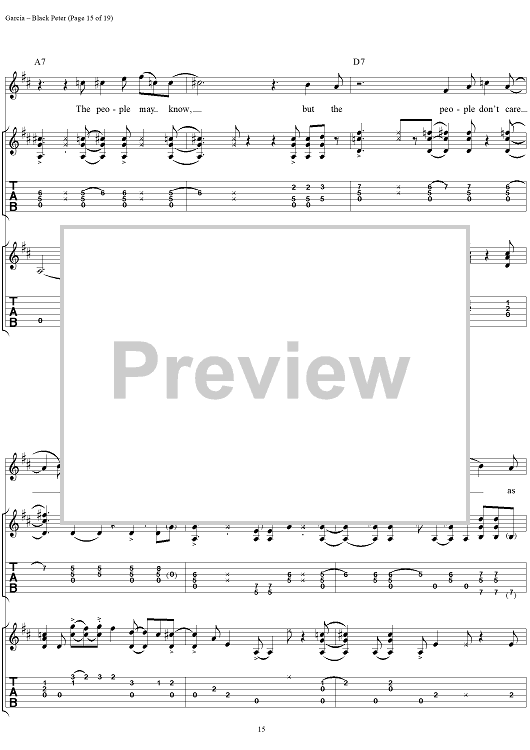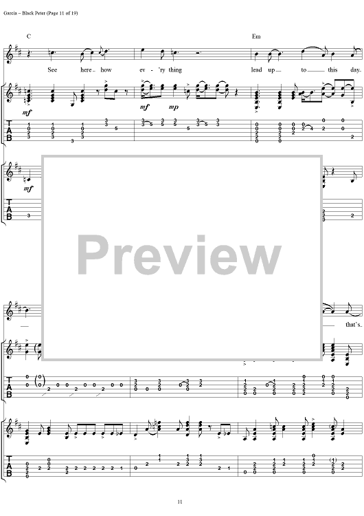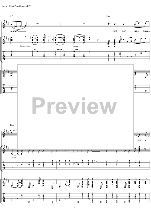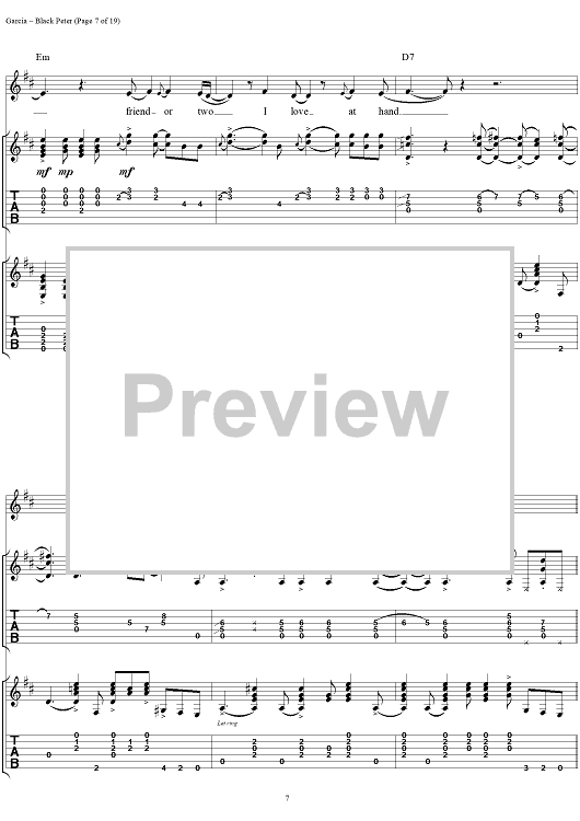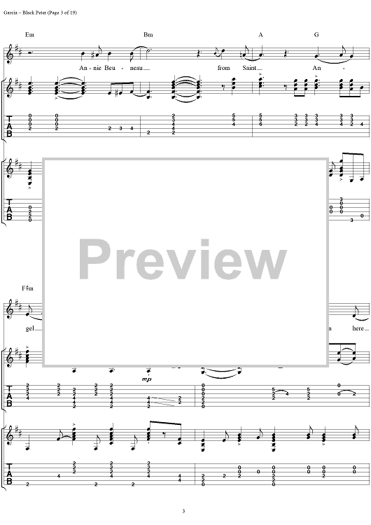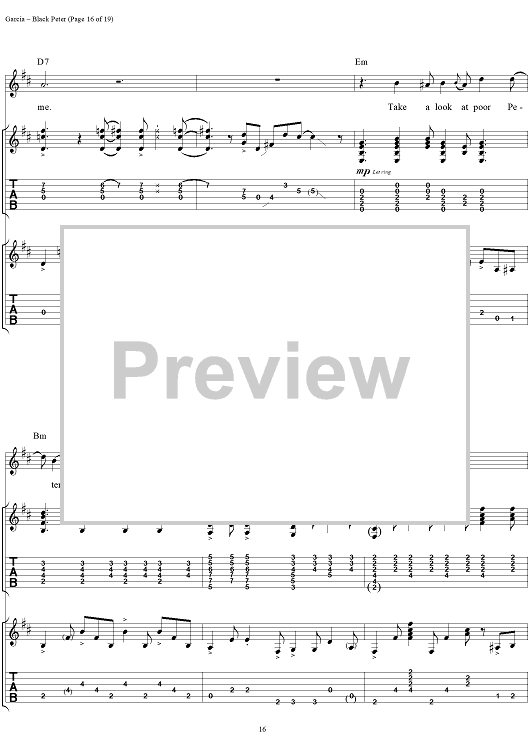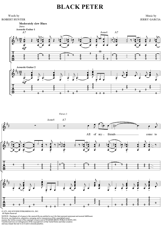 Digital Sheet Music for Black Peter by Jerry Garcia, Grateful Dead scored for Guitar Tab/Vocal; id:269201