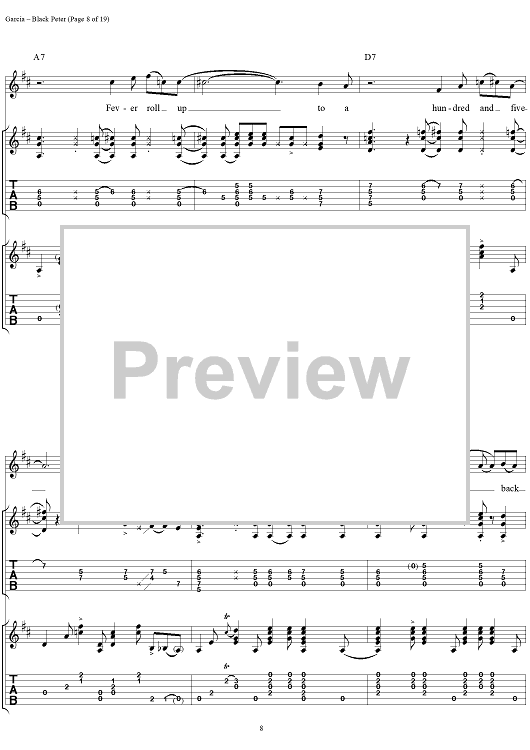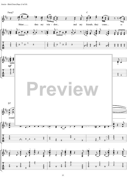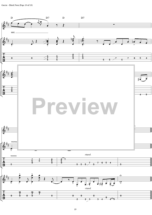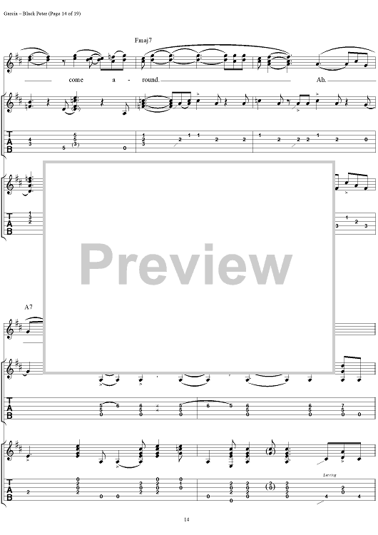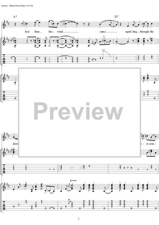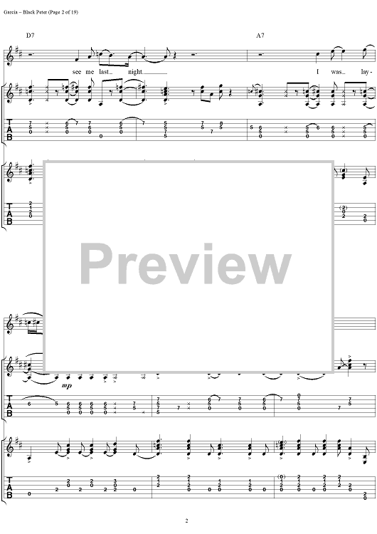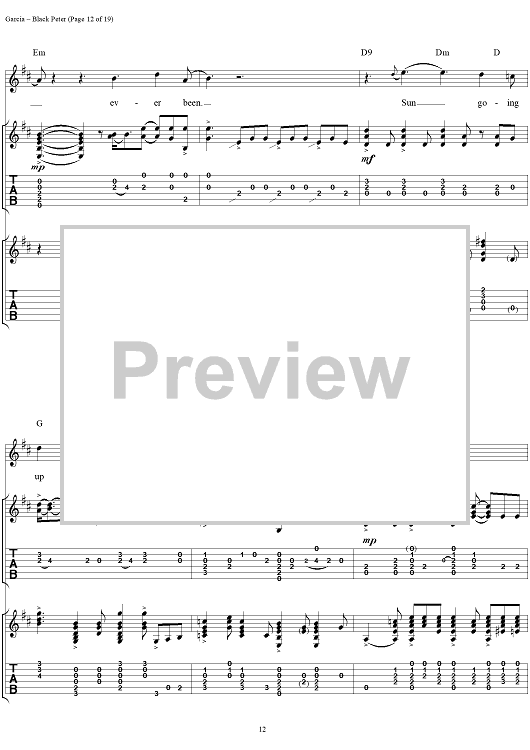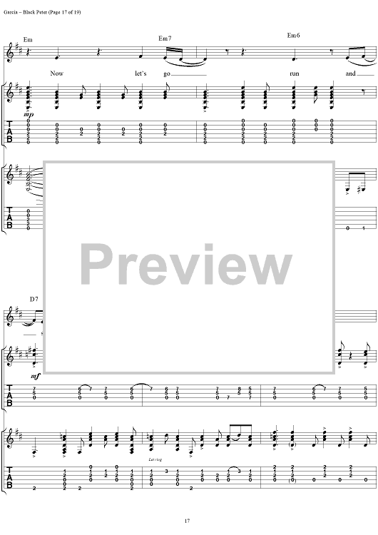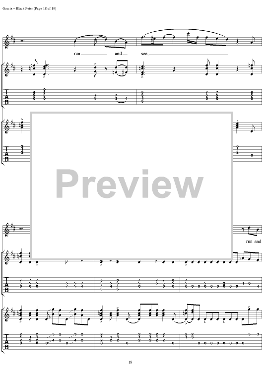 Digital Sheet Music for Black Peter by Jerry Garcia, Grateful Dead scored for Guitar Tab/Vocal; id:269201