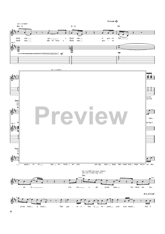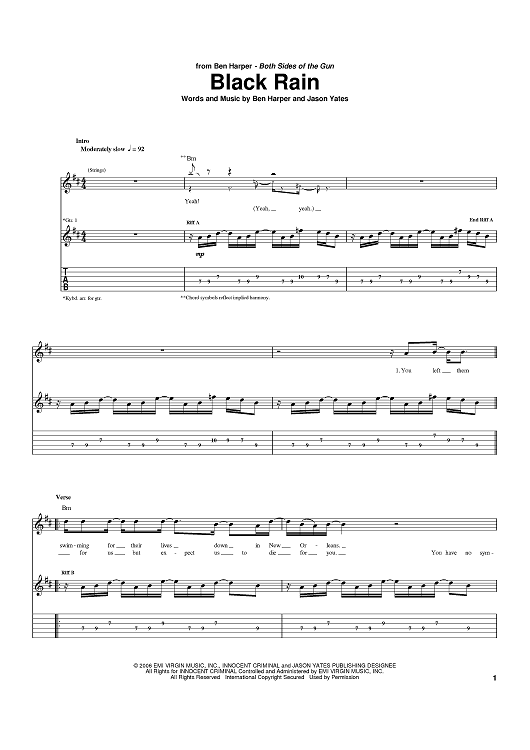Digital Sheet Music for Black Rain by Ben Harper, Jason Yates scored for Guitar Tab; id:390077