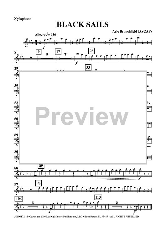 Digital Sheet Music for Black Sails - Xylophone by , Aric Branchfield scored for Concert Band; id:461440