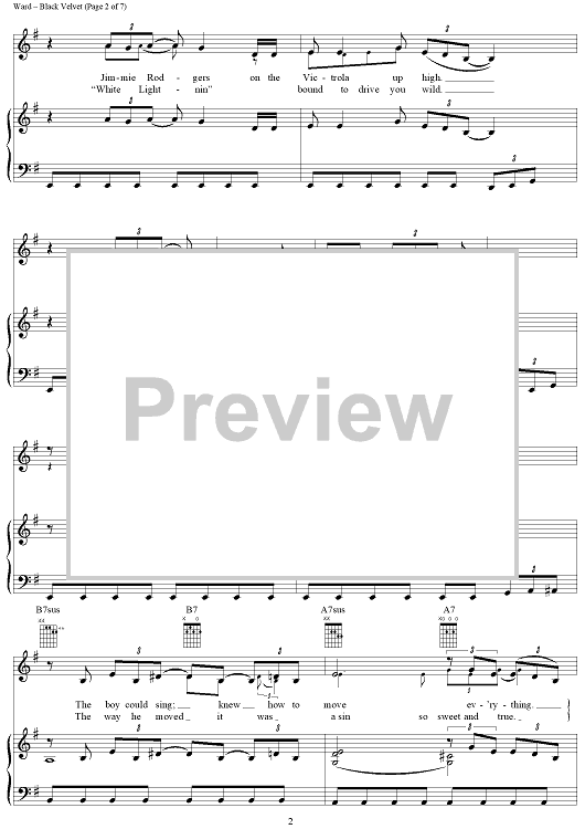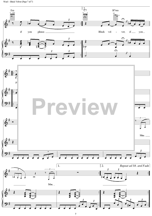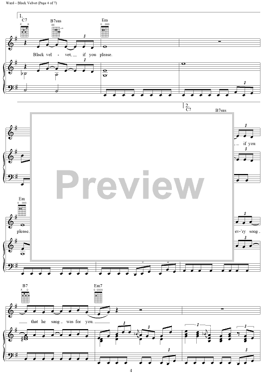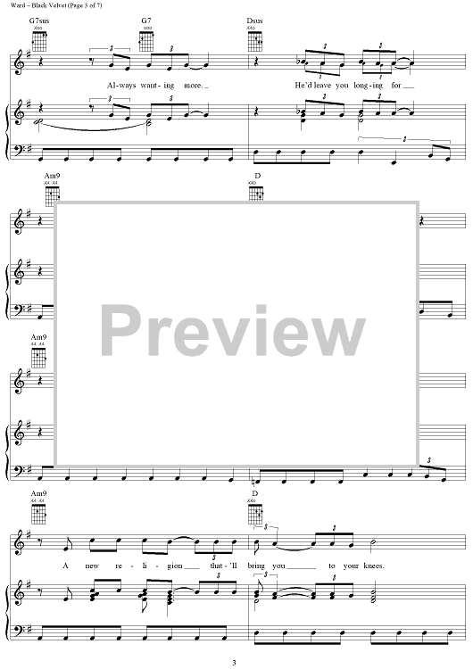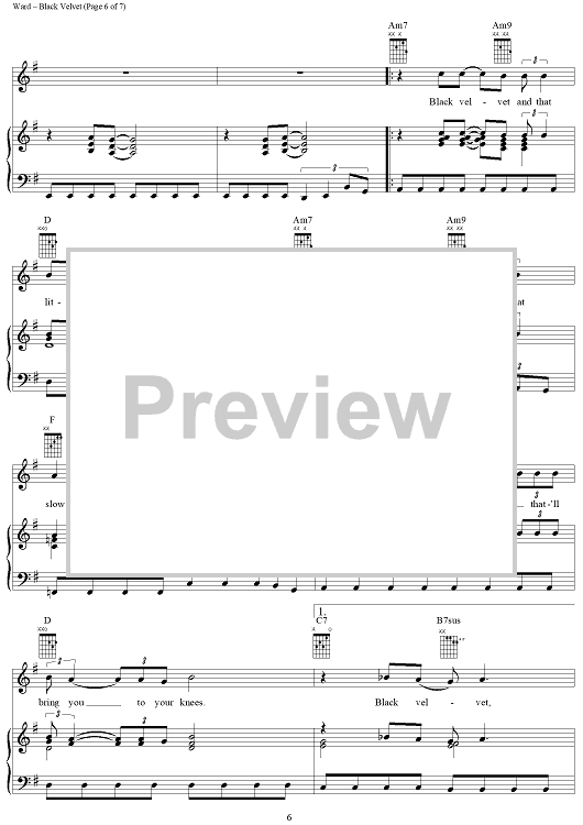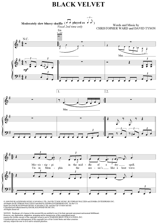 Digital Sheet Music for Black Velvet by Alannah Myles, Christopher Ward, David Tyson scored for Piano/Vocal/Chords; id:264211