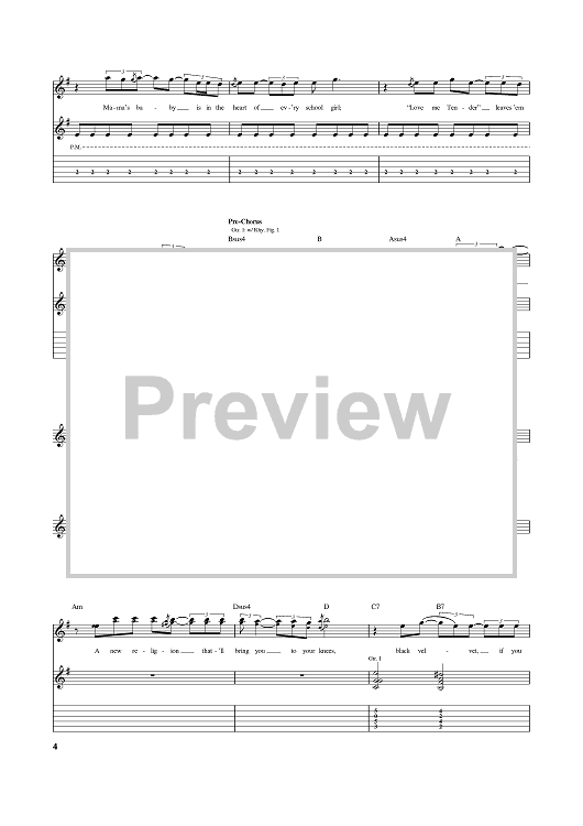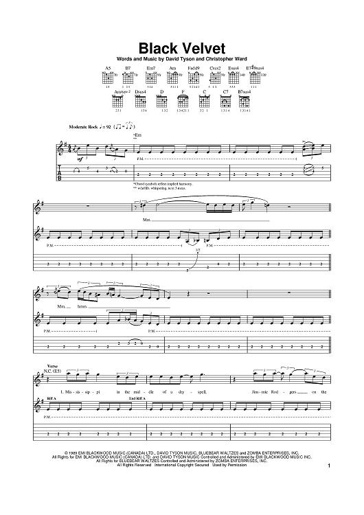 Digital Sheet Music for Black Velvet by Alannah Myles, Christopher Ward, David Tyson scored for Guitar Tab; id:368940