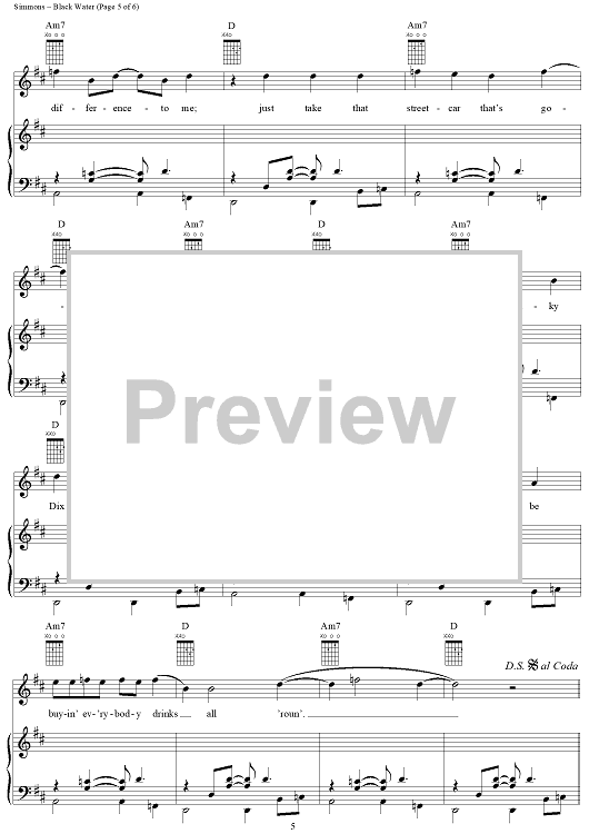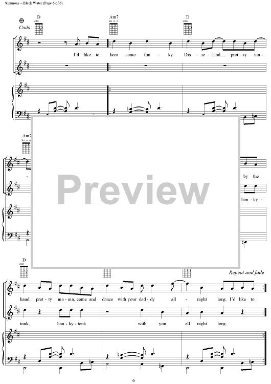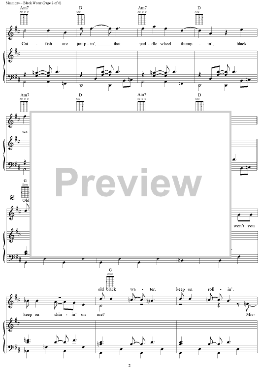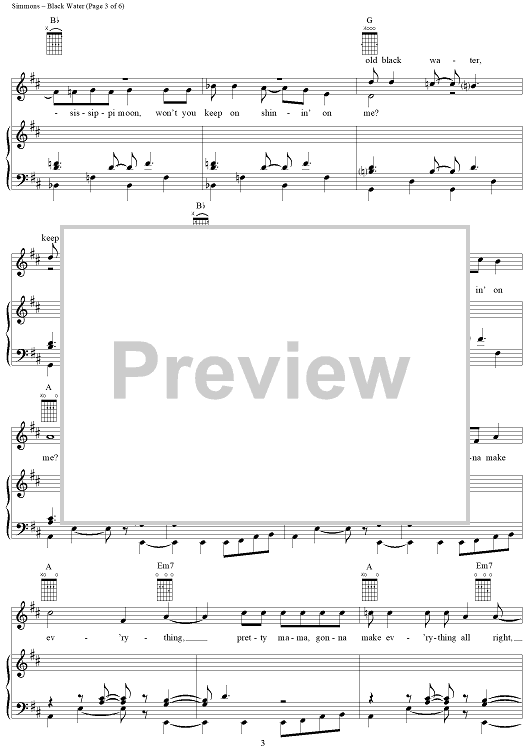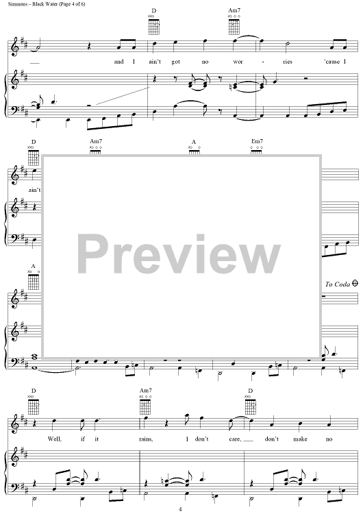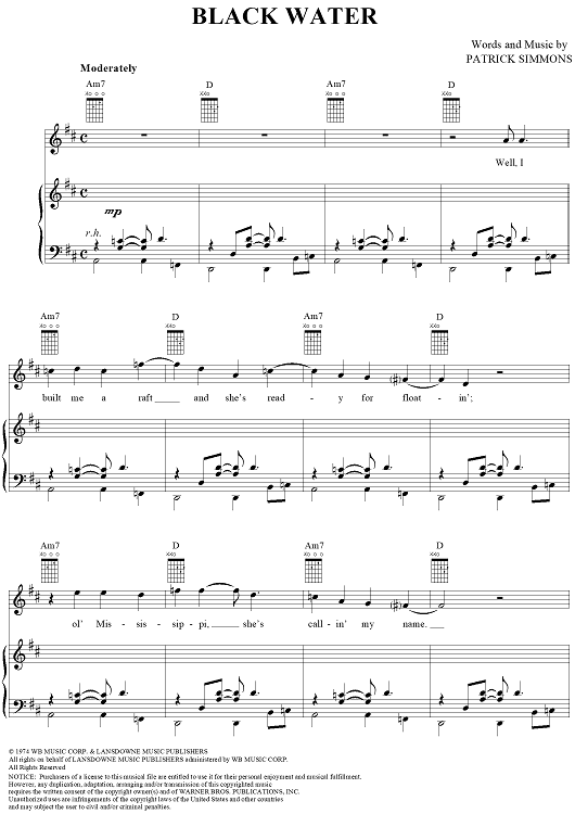 Digital Sheet Music for Black Water by Patrick Simmons, The Doobie Brothers scored for Piano/Vocal/Chords; id:219064