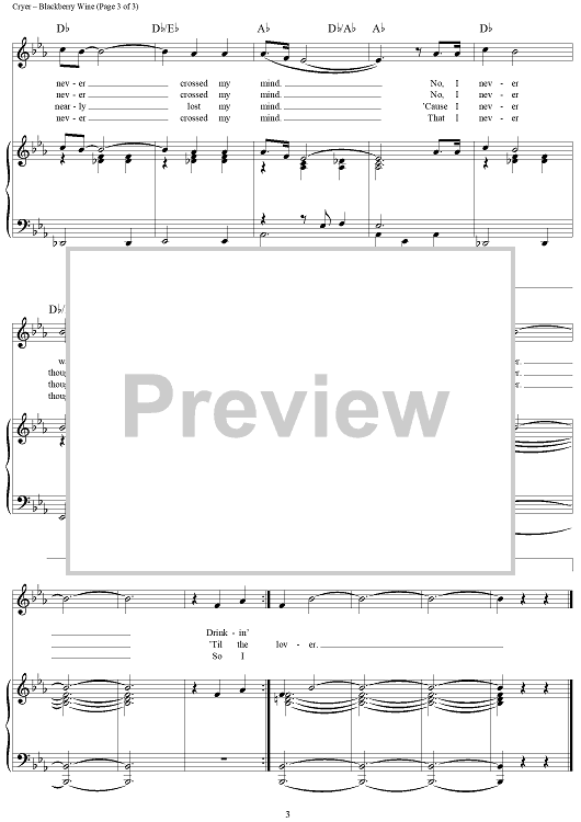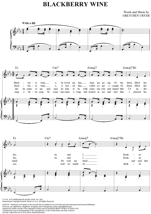 "Blackberry Wine" Sheet Music by Cryer and Ford
