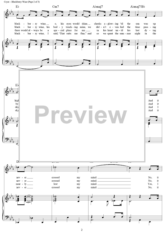 Digital Sheet Music for Blackberry Wine by Gretchen Cryer, Cryer and Ford scored for Piano/Vocal/Chords; id:271804