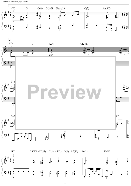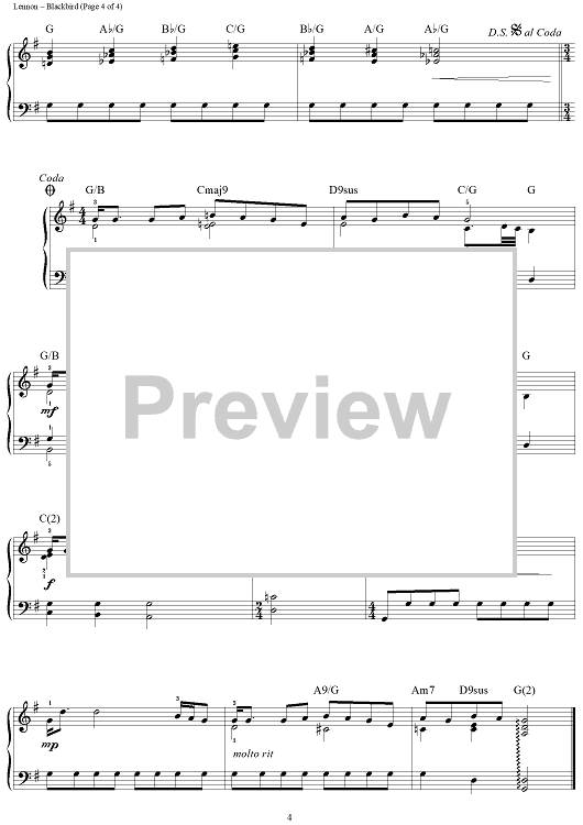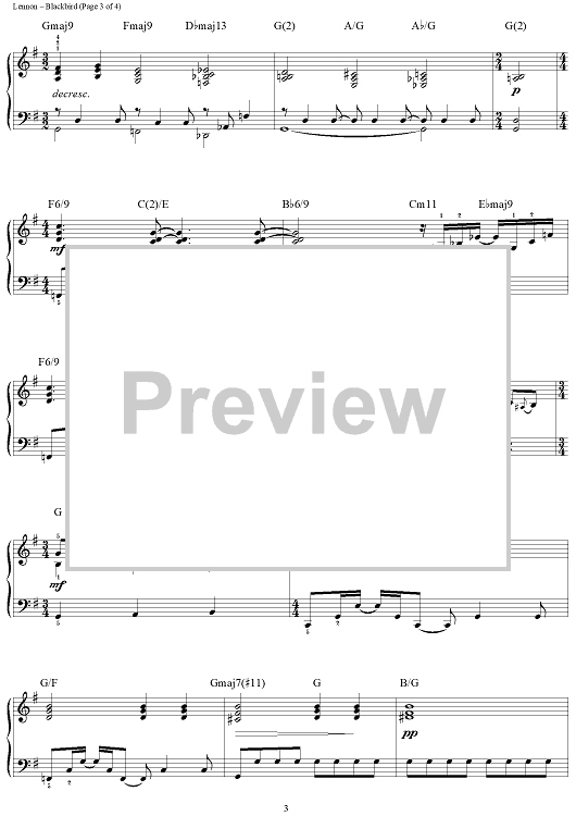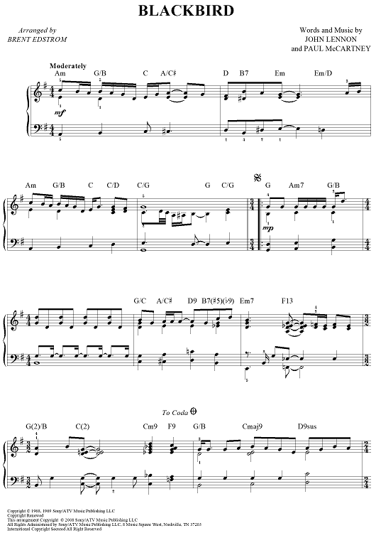 Digital Sheet Music for Blackbird by Paul McCartney, John Lennon, Brent Edstrom scored for Piano Solo; id:458101