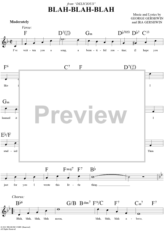 Digital Sheet Music for Blah, Blah, Blah by , George Gershwin, Ira Gershwin scored for Lead Sheet; id:283559