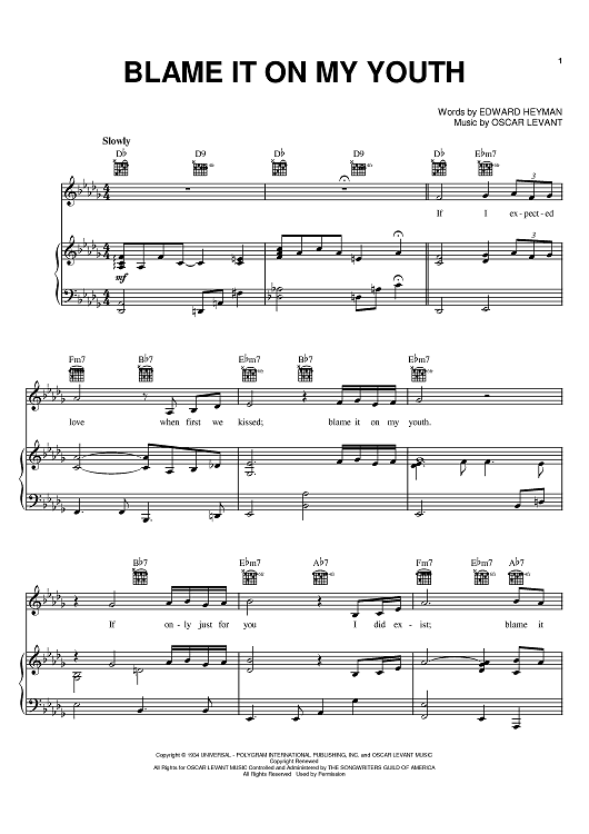 Digital Sheet Music for Blame It On My Youth by Edward Heyman, Jamie Cullum, Oscar Levant scored for Piano/Vocal/Chords; id:380342