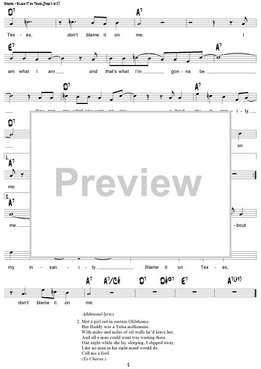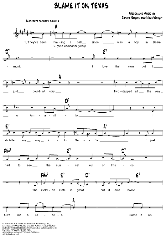 Digital Sheet Music for Blame It on Texas by Kenny Rogers, Mark Wright, Mark Chesnutt scored for Lead Sheet; id:255956