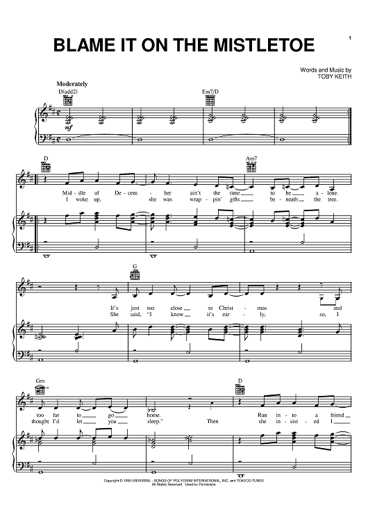 Digital Sheet Music for Blame It On The Mistletoe by Toby Keith scored for Piano/Vocal/Chords; id:392498