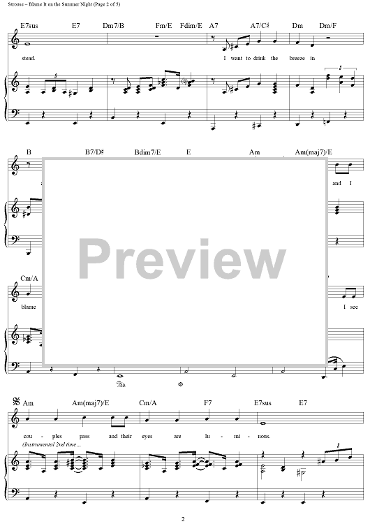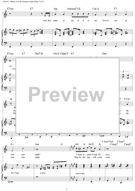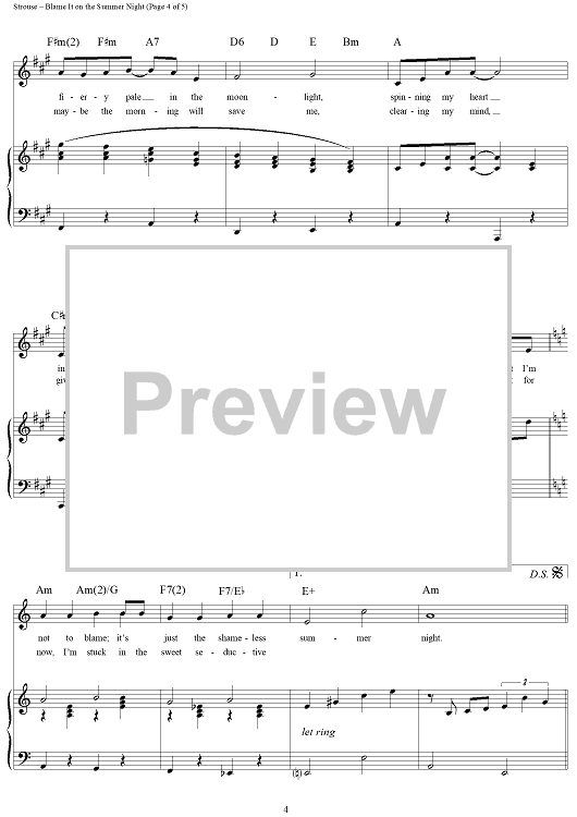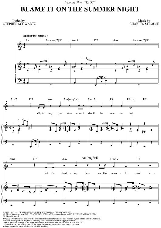 Digital Sheet Music for Blame It On The Summer Night by Charles Strouse, Stephen Schwartz scored for Piano/Vocal/Chords; id:241840