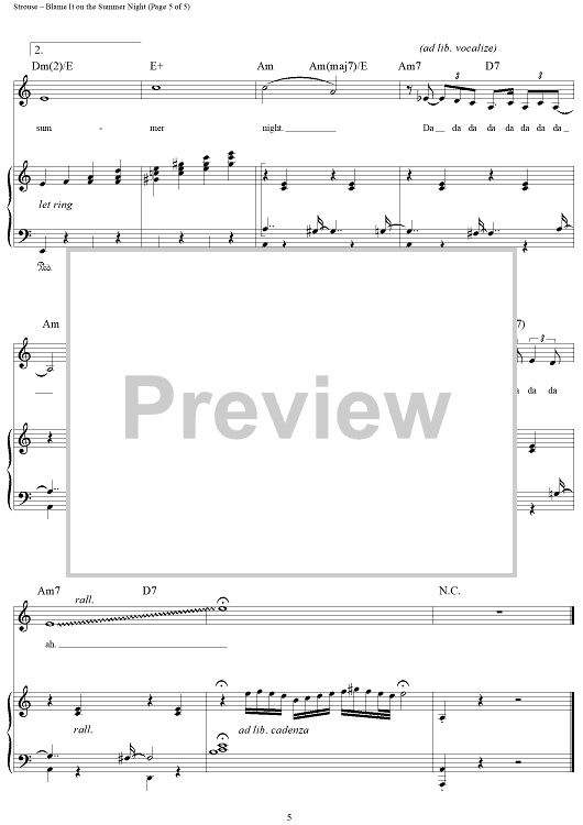 "Blame It On The Summer Night" Sheet Music by Charles Strouse