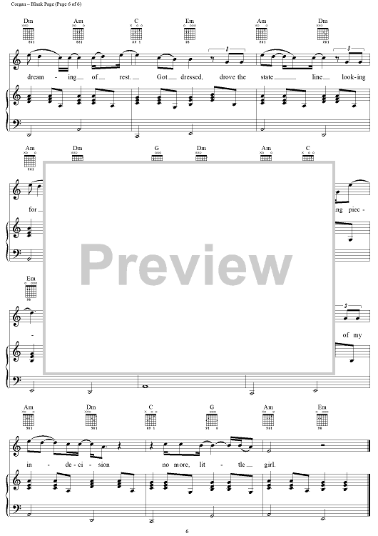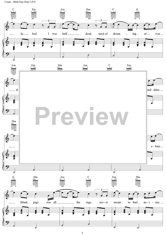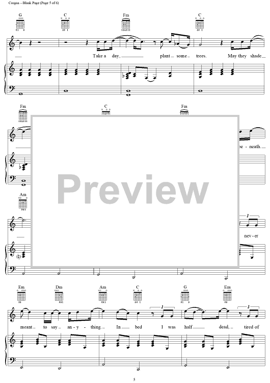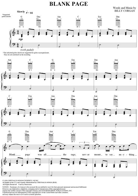 Digital Sheet Music for Blank Page by Billy Corgan, Smashing Pumpkins scored for Piano/Vocal/Chords; id:113579