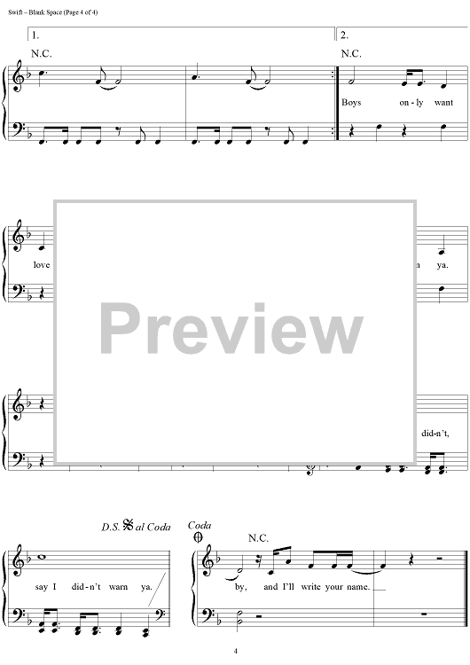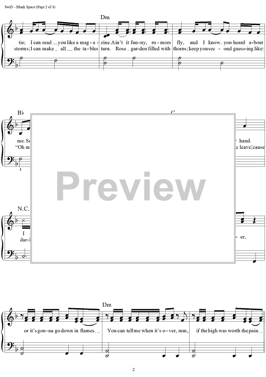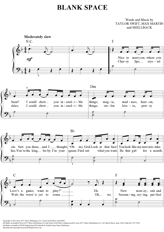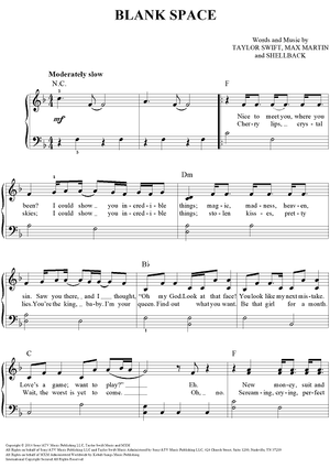 Digital Sheet Music for Blank Space by Max Martin, Taylor Swift, Shellback scored for Easy Piano/Vocal/Chords; id:460106