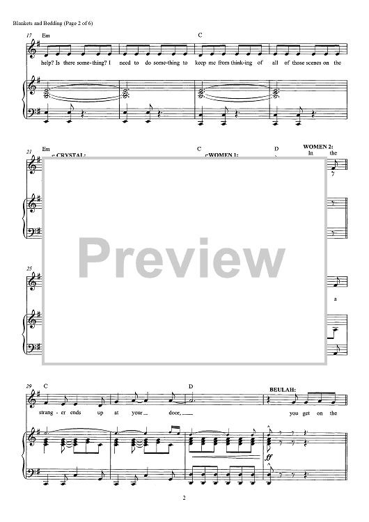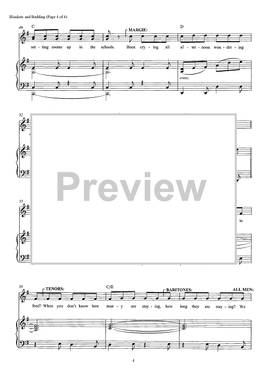 Digital Sheet Music for Blankets And Bedding - from Come From Away by Irene Sankoff, David Hein scored for Piano/Vocal/Chords; id:466617