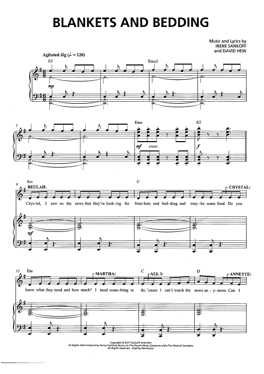 "Blankets And Bedding - from Come From Away" Sheet Music by Irene Sankoff