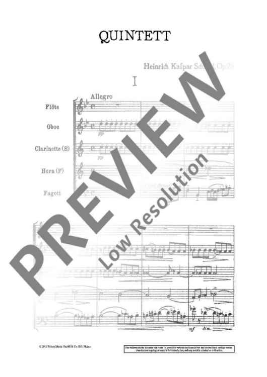 Digital Sheet Music for Bläserquintett B flat major - Score and Parts by Heinrich Kaspar Schmid scored for 5 Wind Instruments; id:488631