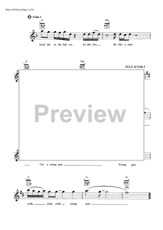Digital Sheet Music for Blaze Of Glory by Jon Bon Jovi scored for Ukulele/Vocal; id:465479