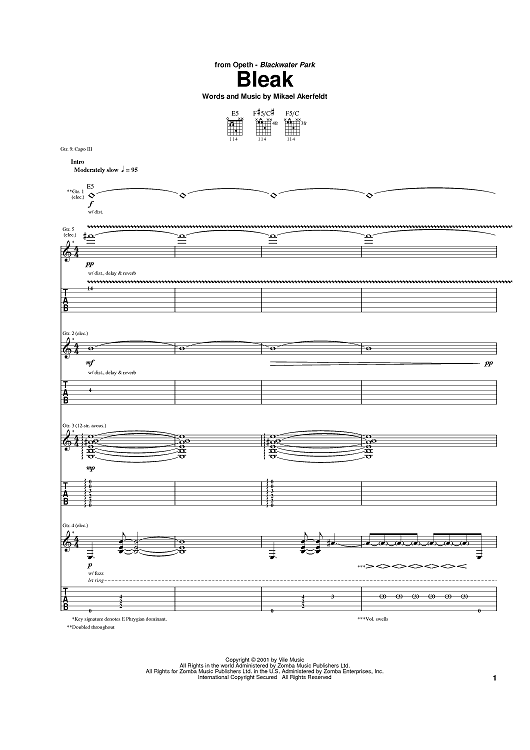 Digital Sheet Music for Bleak by Mikael Akerfeldt, Opeth scored for Guitar Tab; id:397959