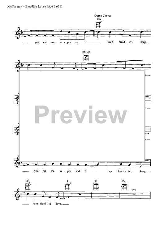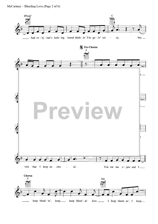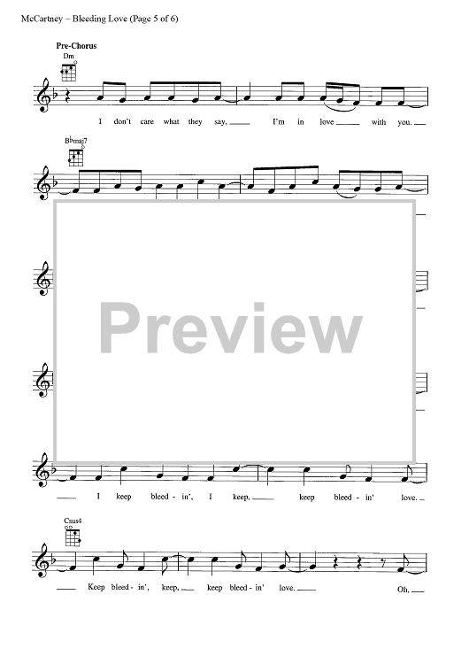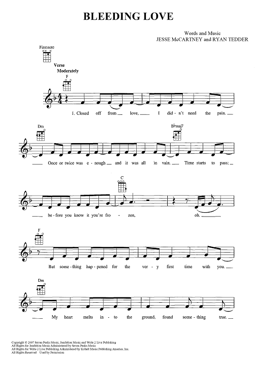 Digital Sheet Music for Bleeding Love by Ryan Tedder, Jesse McCartney, Leona Lewis scored for Ukulele/Vocal; id:444750