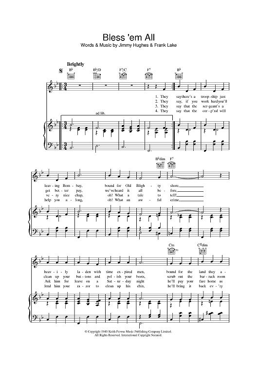 Digital Sheet Music for Bless 'Em All by Jimmy Hughes, Frank Lake scored for Piano/Vocal/Chords; id:392894