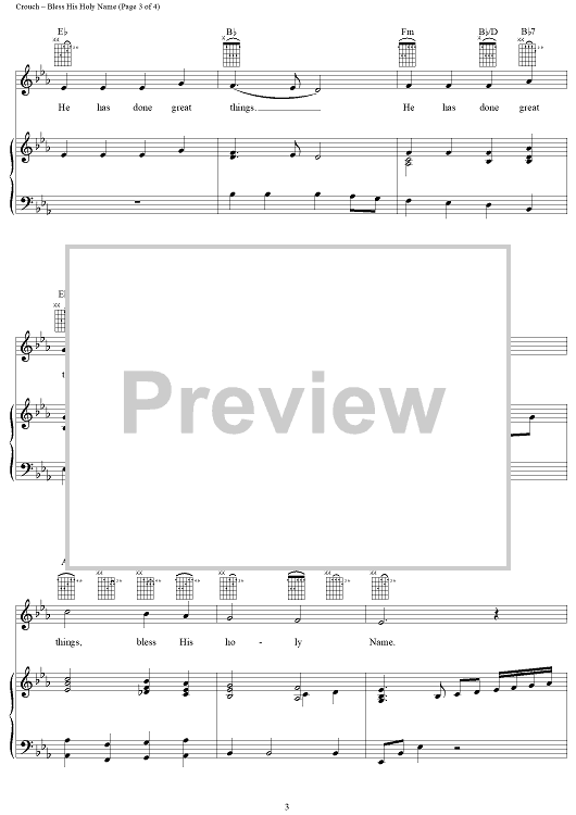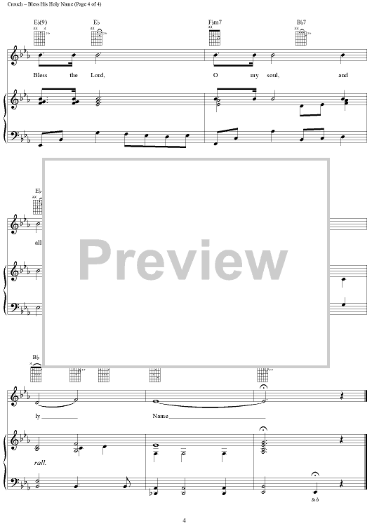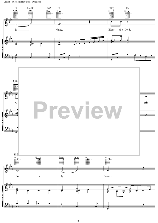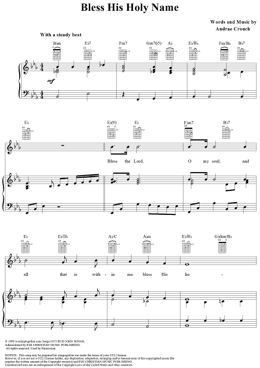 Digital Sheet Music for Bless His Holy Name by Andrae Crouch scored for Piano/Vocal/Chords; id:271808