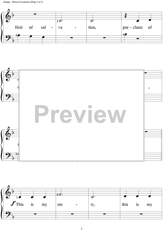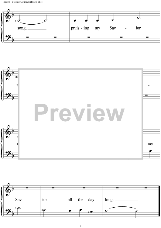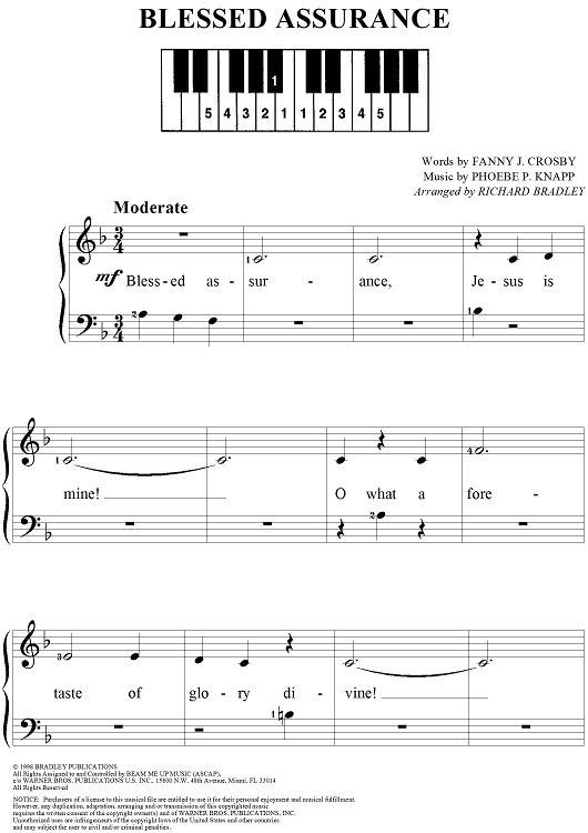 Digital Sheet Music for Blessed Assurance by Richard Bradley, Fanny Crosby, Phoebe Palmer Knapp scored for Five Finger Piano/Vocal; id:250326