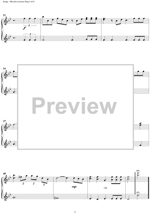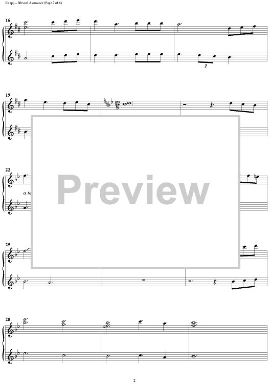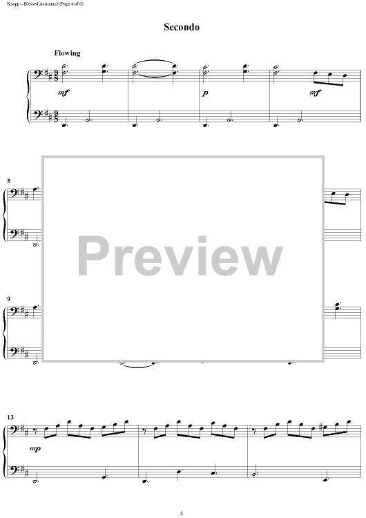 Digital Sheet Music for Blessed Assurance by Fanny Crosby, Phoebe Palmer Knapp scored for 1 Piano, 4 Hands; id:402775