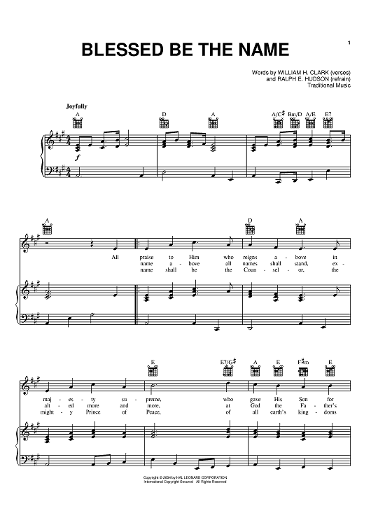 Digital Sheet Music for Blessed Be The Name by William J. Kirkpatrick, Ralph E. Hudson, William H. Clark scored for Piano/Vocal/Chords; id:373668