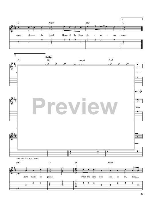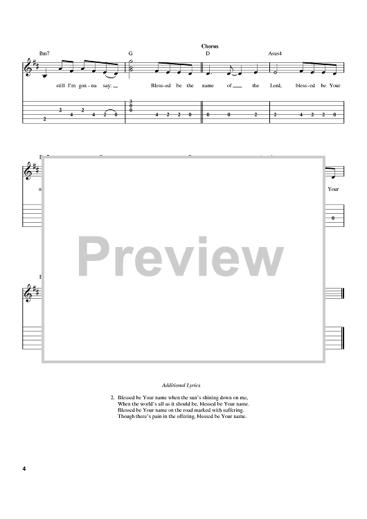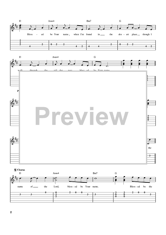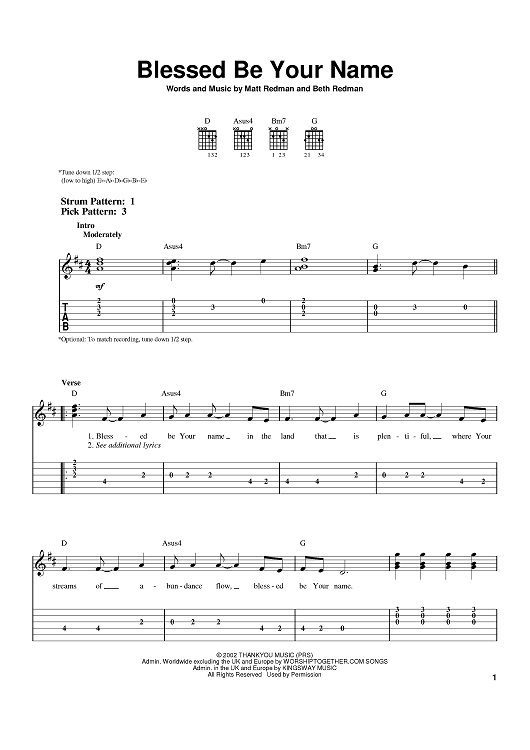 Digital Sheet Music for Blessed Be Your Name by Matt Redman, Beth Redman, Tree63 scored for Easy Guitar Tab; id:385223