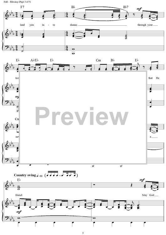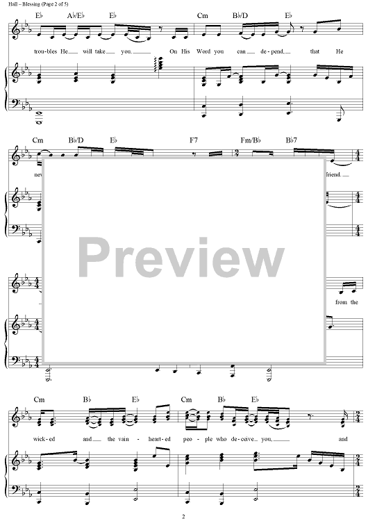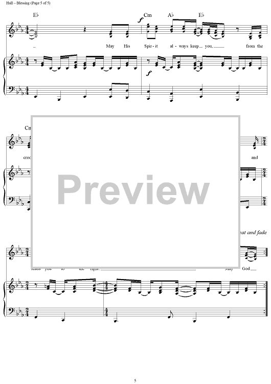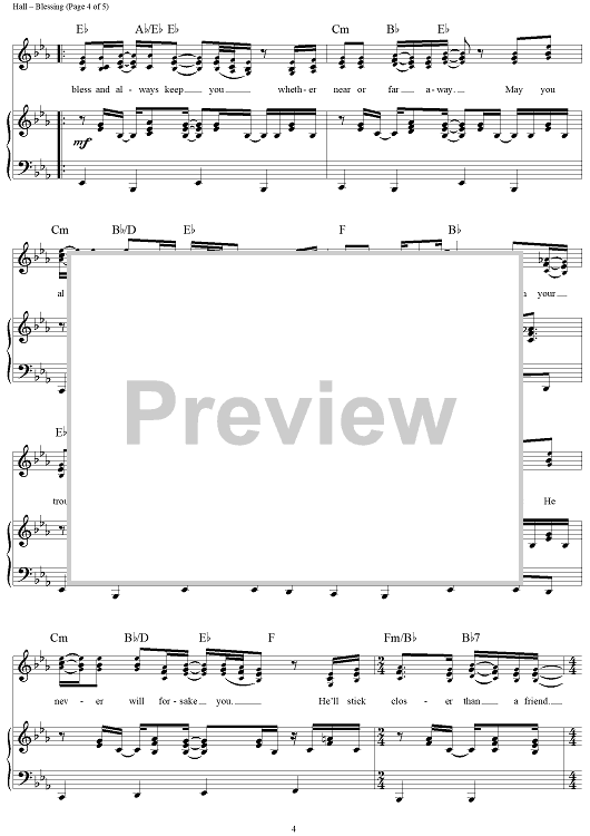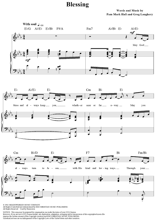 Digital Sheet Music for Blessing by Pam Mark Hall, Greg Laughery scored for Piano/Vocal/Chords; id:112458