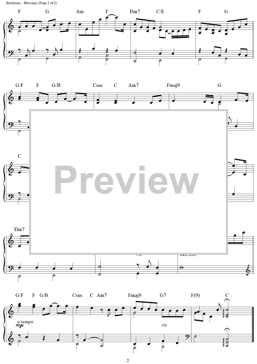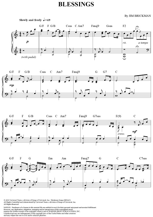 Digital Sheet Music for Blessings by Jim Brickman scored for Piano Solo; id:302997
