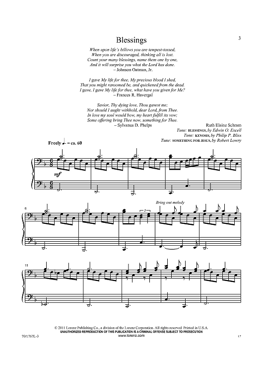 Digital Sheet Music for Blessings by Various, Ruth Elaine Schram scored for Piano Solo; id:434446