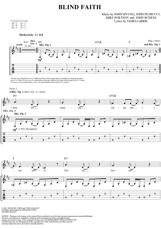 Digital Sheet Music for Blind Faith by , John Myung, Dream Theater, John Petrucci, Mike Portnoy, Jordan Rudess, James LaBrie scored for Guitar Tab/Vocal; id:293415