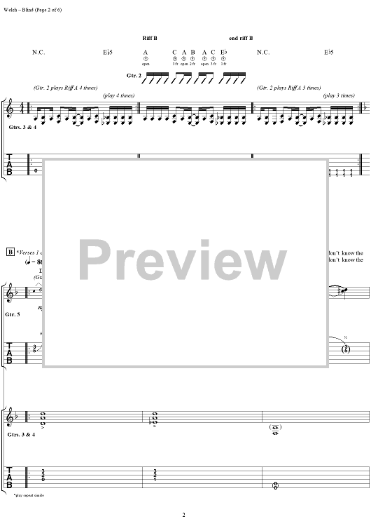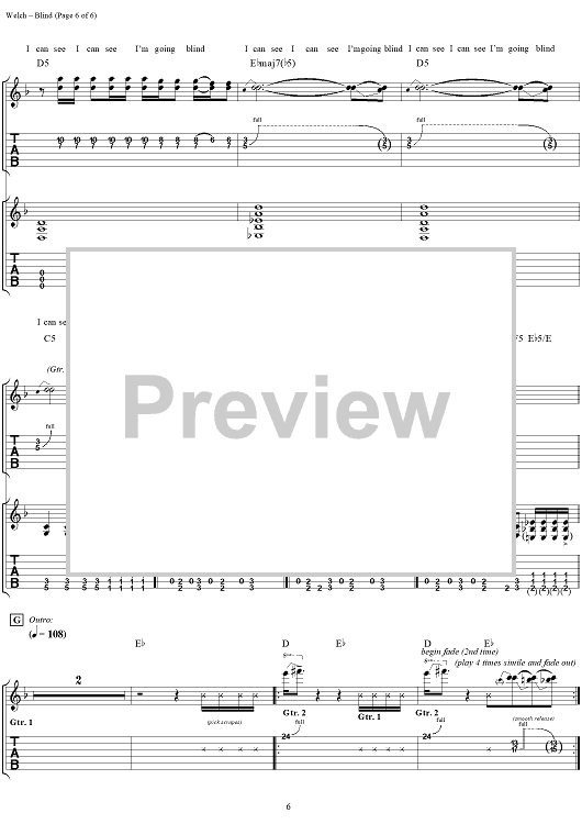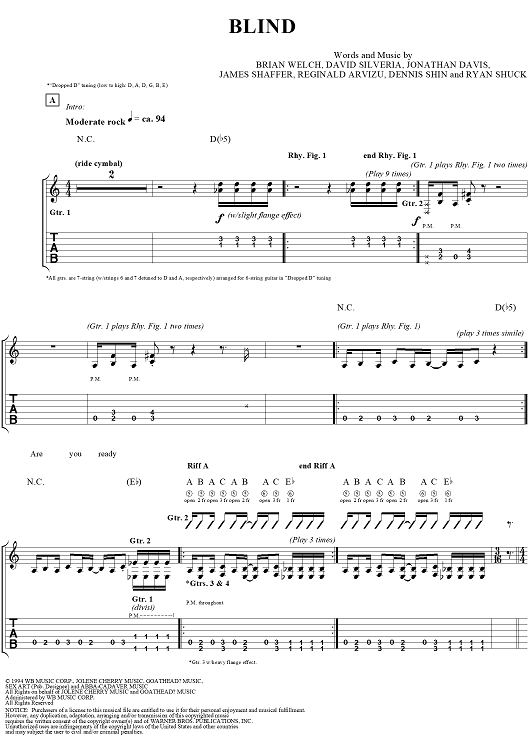 "Blind" Sheet Music by Korn