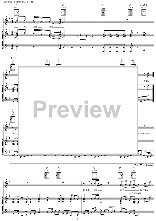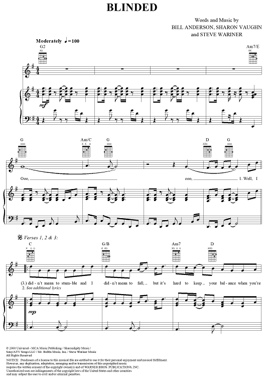 Digital Sheet Music for Blinded by Steve Wariner, Bill Anderson, Sharon Vaughn scored for Piano/Vocal/Chords; id:286472