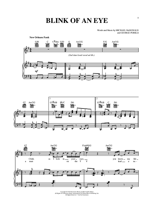 Digital Sheet Music for Blink Of An Eye by Michael McDonald, George Perilli scored for Piano/Vocal/Chords; id:390647
