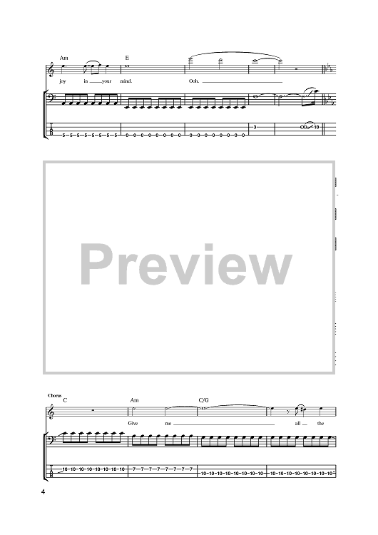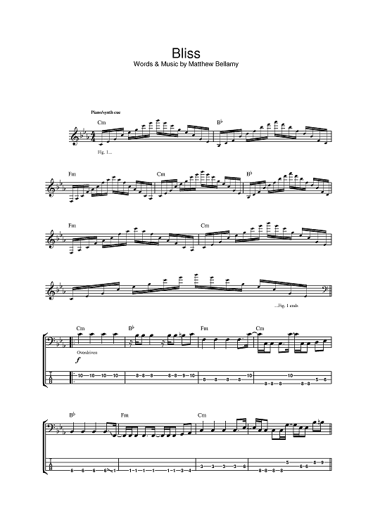 Digital Sheet Music for Bliss by Matthew Bellamy, Muse scored for Bass Tab; id:383400
