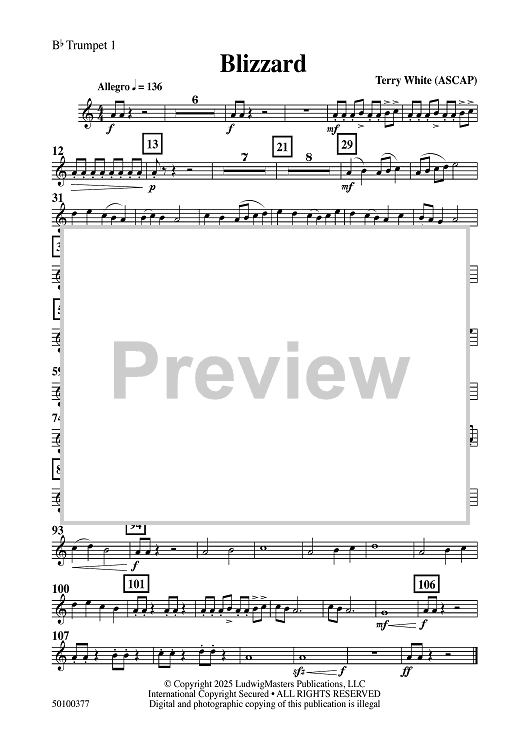 Digital Sheet Music for Blizzard - Bb Trumpet 1 by Terry White scored for Concert Band; id:509006