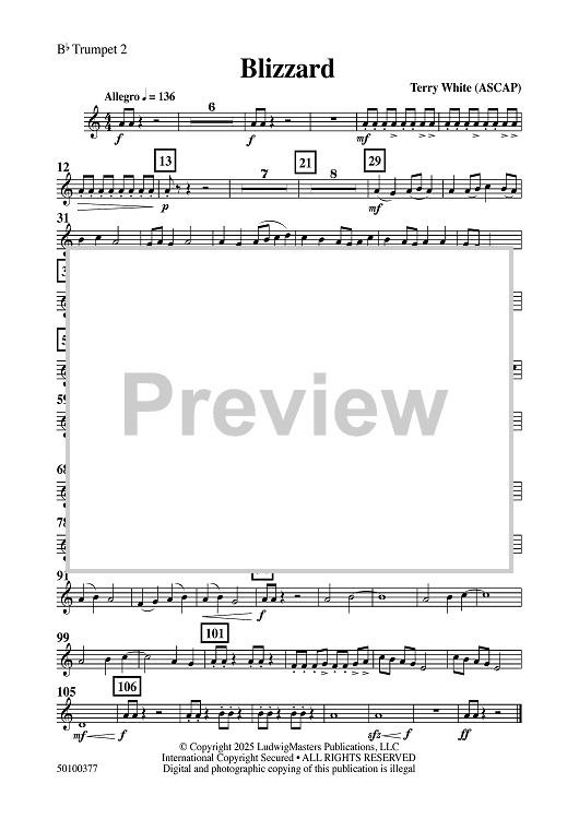 Digital Sheet Music for Blizzard - Bb Trumpet 2 by Terry White scored for Concert Band; id:509007