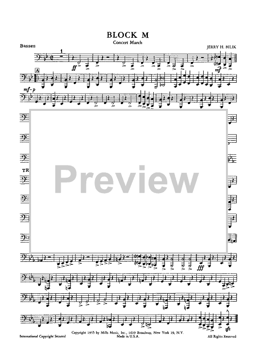 Digital Sheet Music for Block M - Concert March - Tuba by , Jerry H. Bilik scored for Concert Band; id:432998