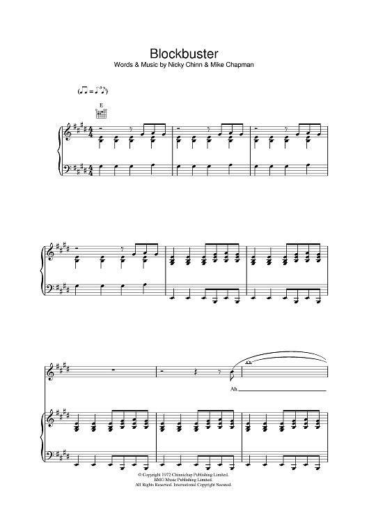 Digital Sheet Music for Blockbuster by Mike Chapman, Nicky Chinn, The Sweet scored for Piano/Vocal/Chords; id:392122